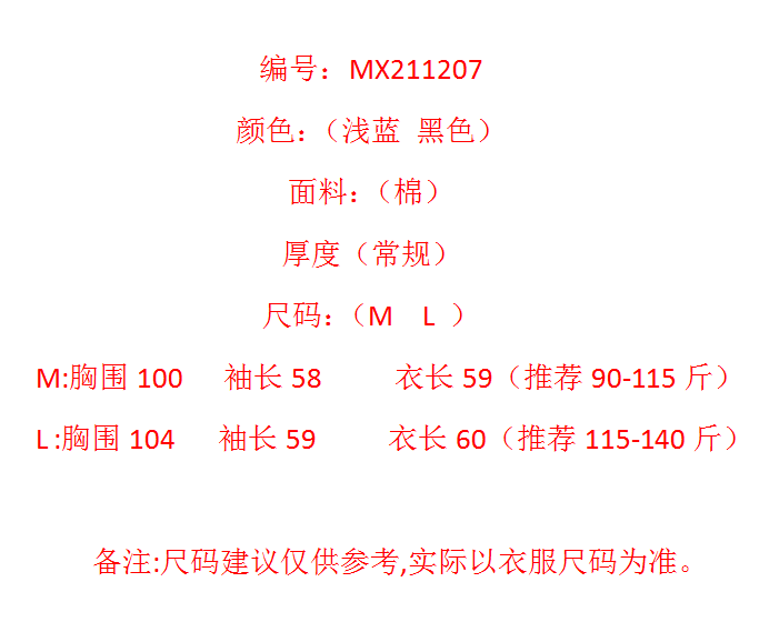 👚 L อกเสื้อ 100-104 ซม. เหมาะสำหรับผู้สวมใส่น้ำหนักตัว 51-60 KG.