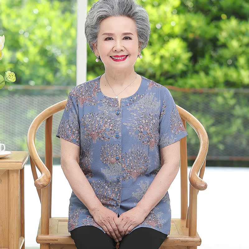 เสื้อคนแก่ เสื้อแม่บ้าน เสื้อผู้สูงอายุ แขนยาว เนื้อผ้าชีฟอง นิ่ม ใส่สบาย ไม่ร้อน ผ้าไม่ต้องรีด ลวดลายผ้าเป็นลายละเอียด สุภาพ สมวัย สวมใส่ได้ทุกโอกาส เสื้อเชิ้ตแขนยาวคุณย่าของคุณยายวัยกลางคนและผู้สูงอายุของคุณแม่เสื้อชิ้นเดียวชุดสูทหญิงชรา เสื้อคนแก่