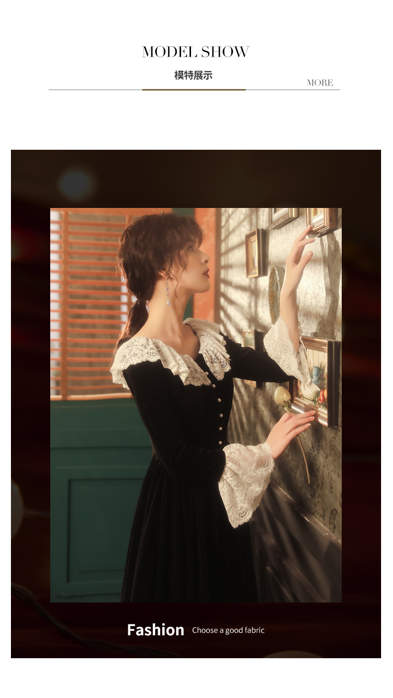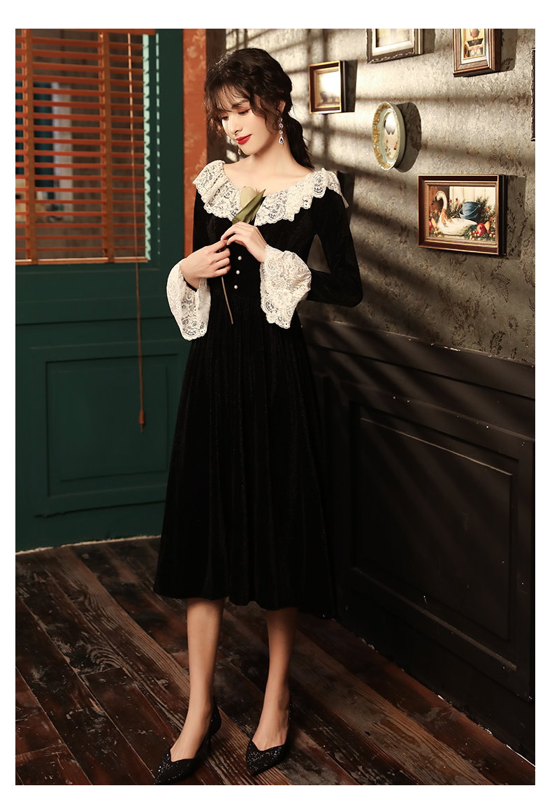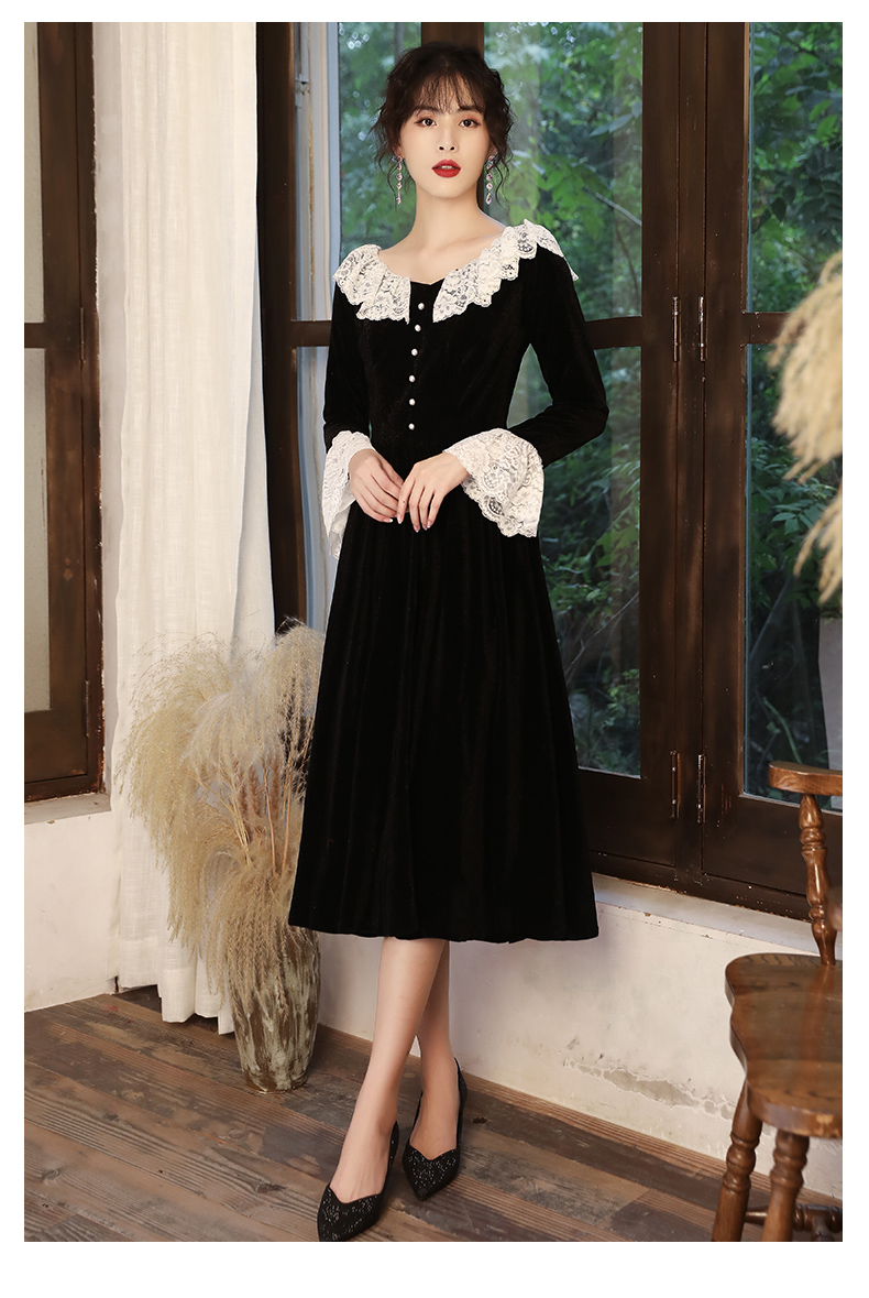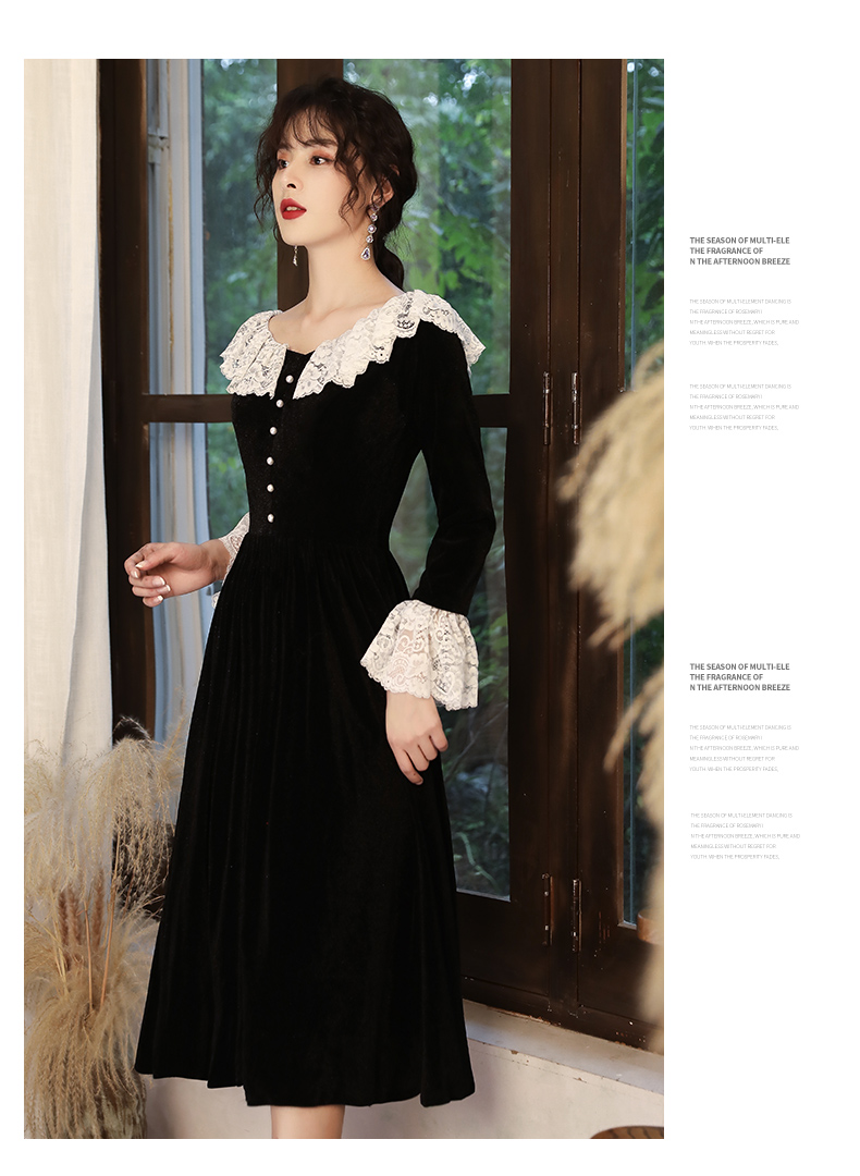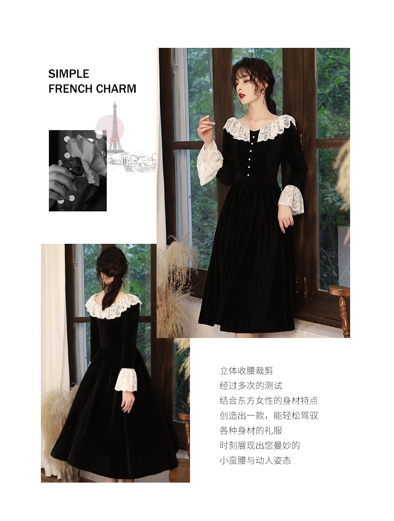 French dress evening dress skirt Women's temperament banquet lady black velvet light luxury high -end high -end high -end sense
