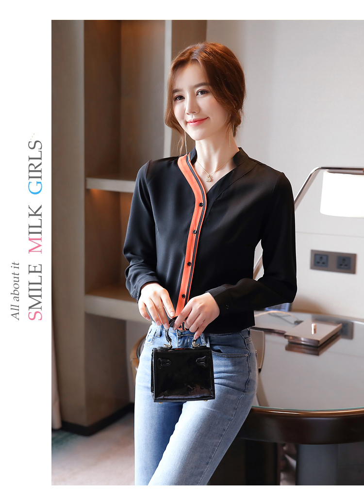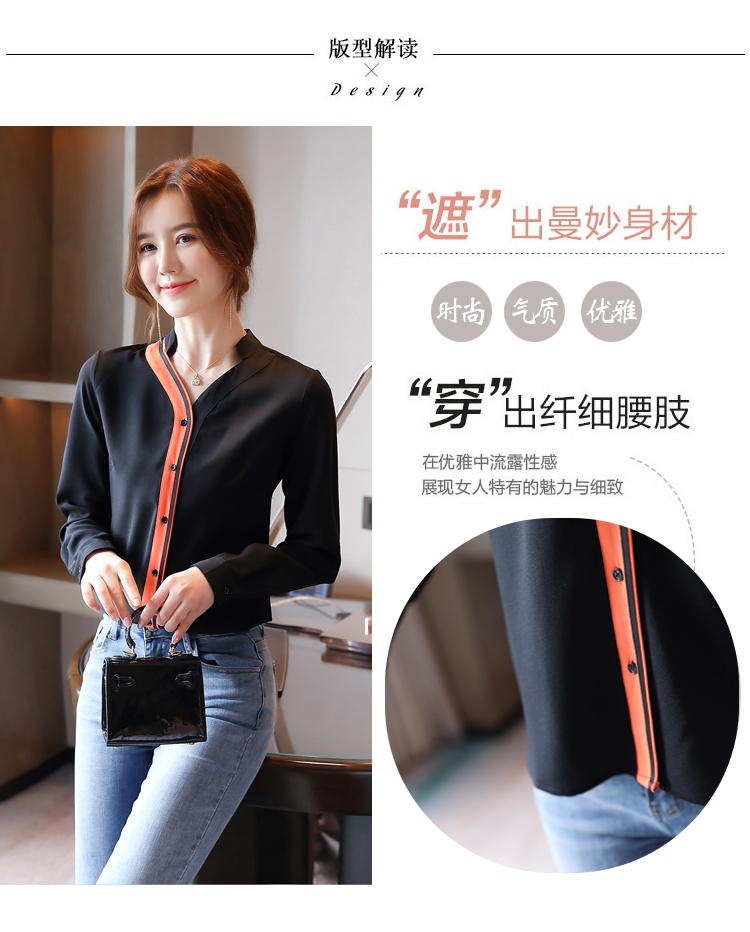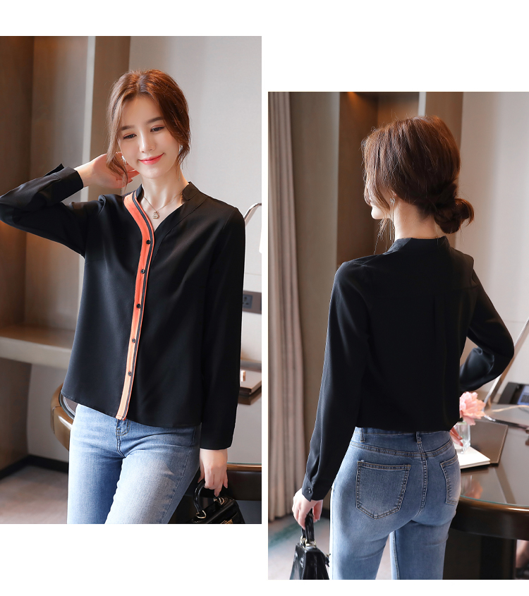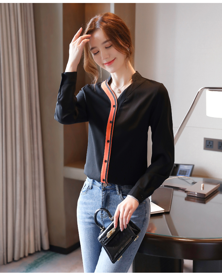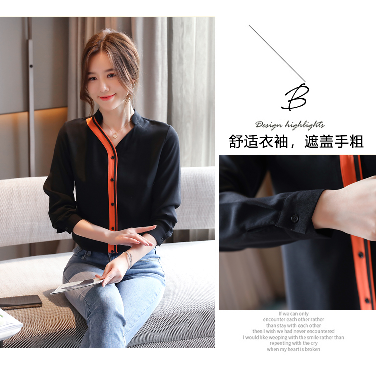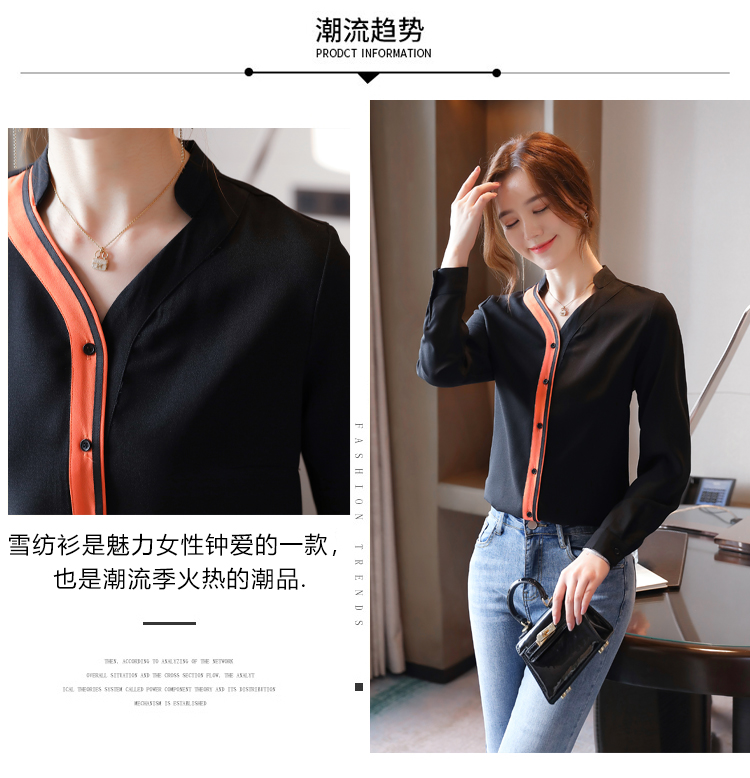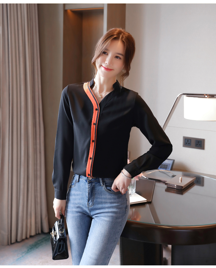 Chiffon shirt 2020 autumn new OL contrast color polka dot printing stand collar shirt blouse polka dot long sleeve shirt