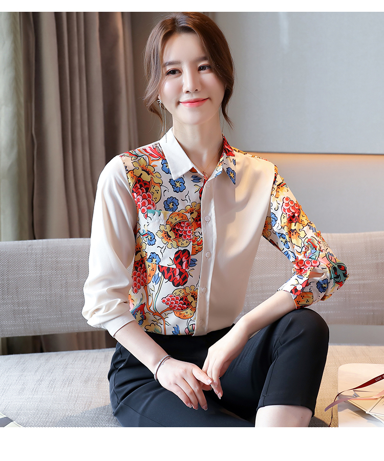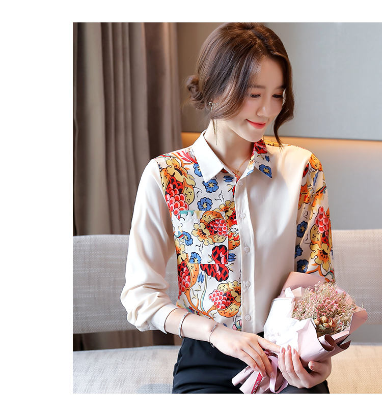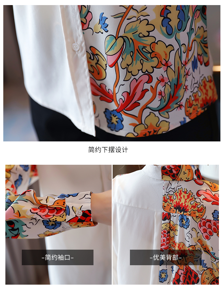 2020 autumn new Korean printing heavy silk shirt women's long-sleeved mulberry silk top lapel silk shirt