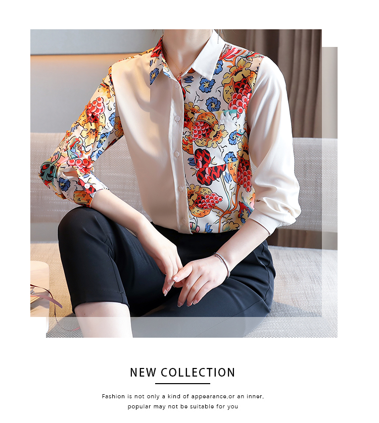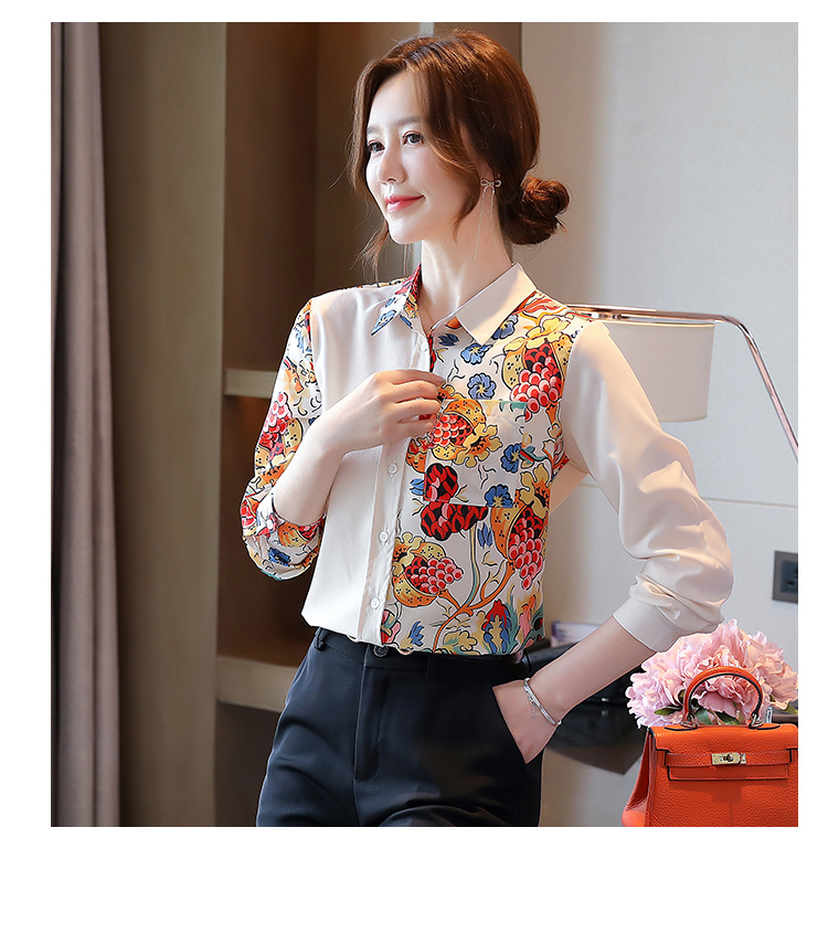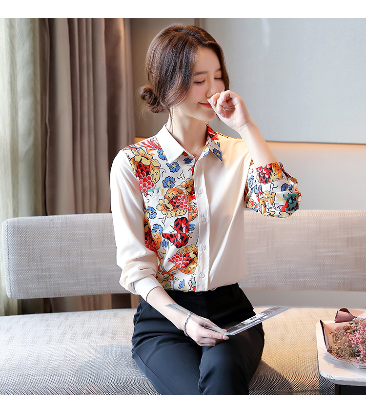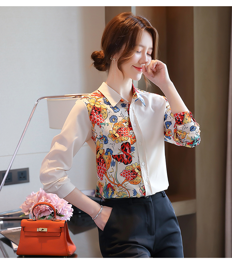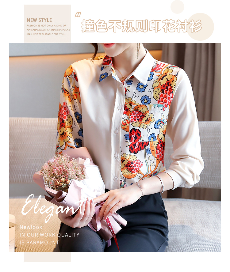 Printed slim shirt women 2020 spring and summer new long-sleeved bottoming shirt shirt fashion western style all-match printed top