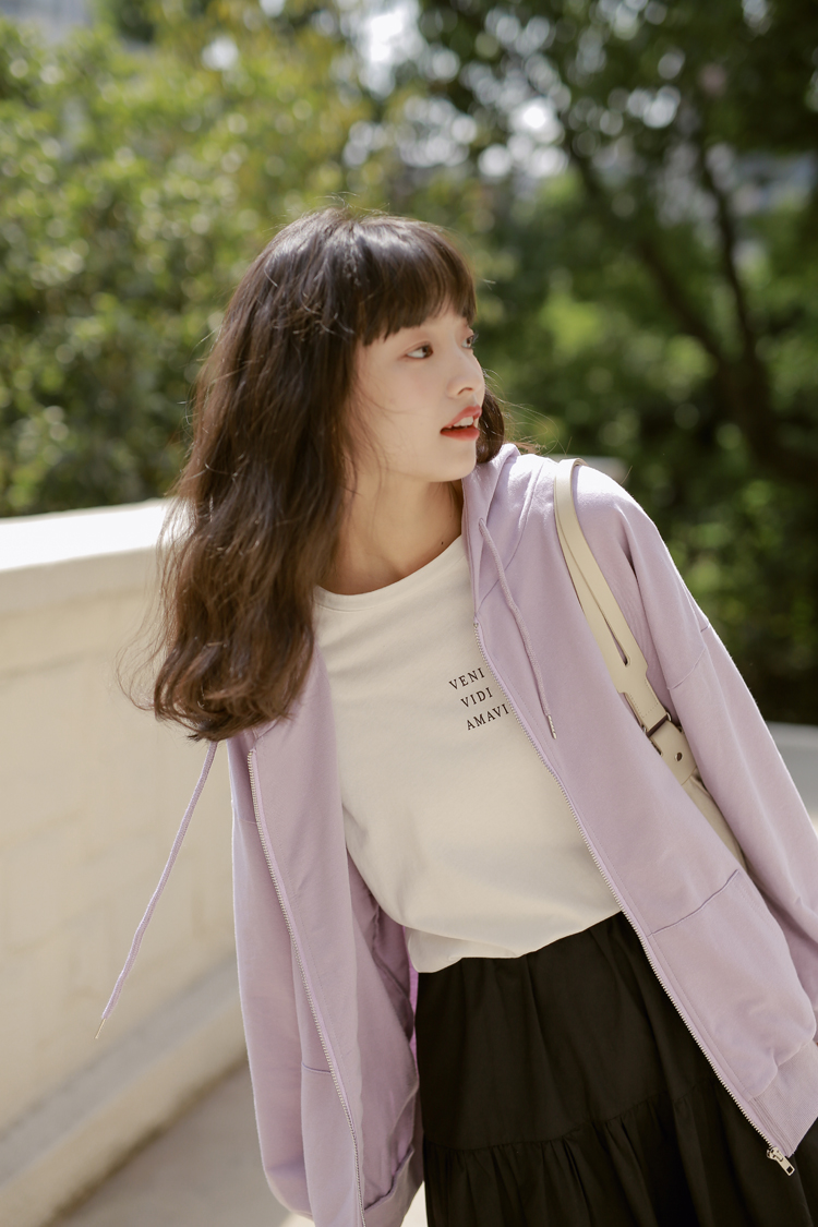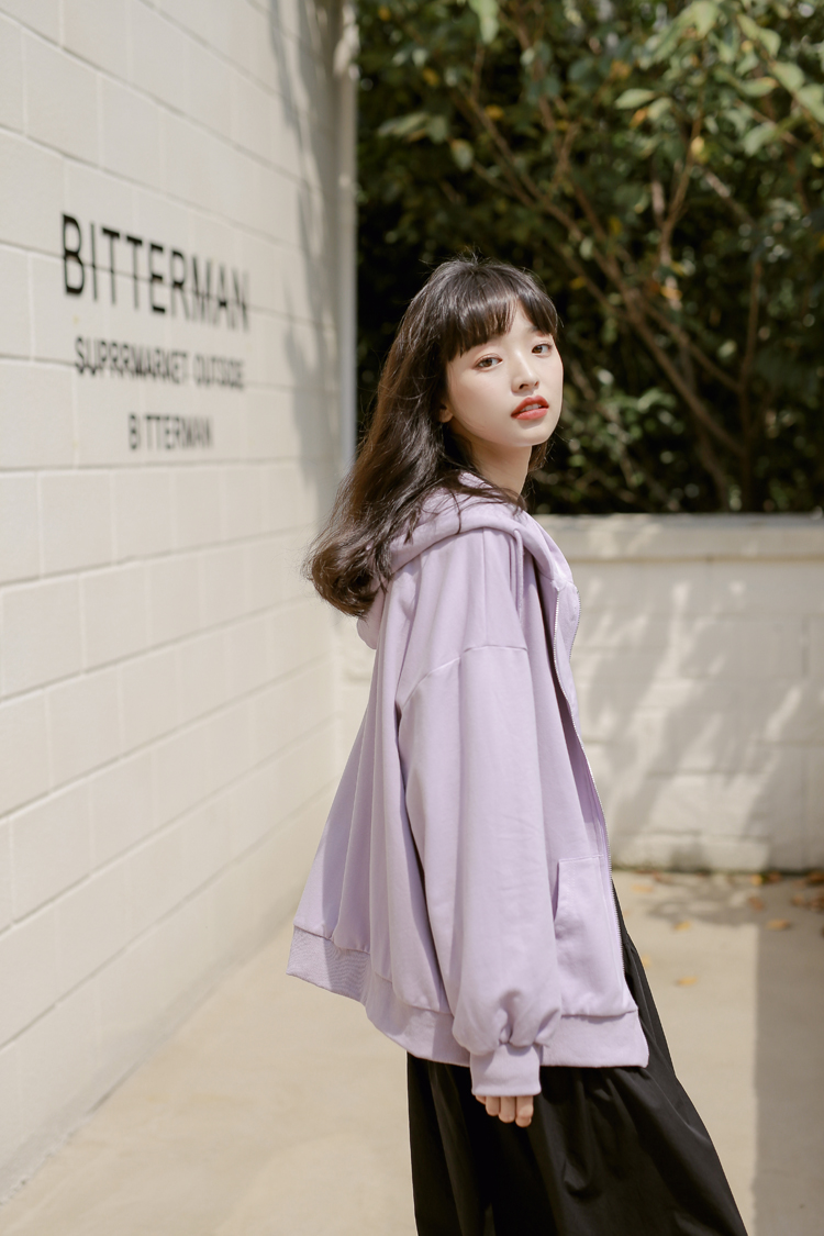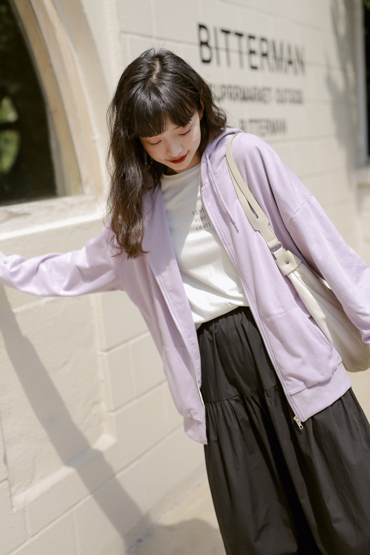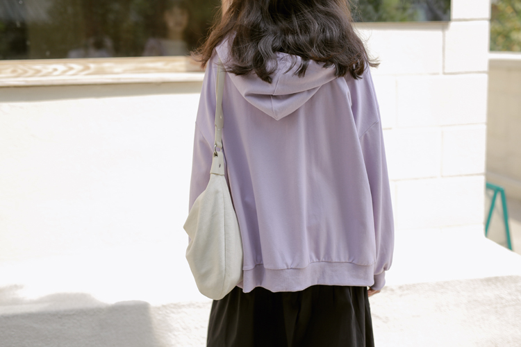 DESCRIPTION — 面料:卫衣棉 颜色:浅紫色 黑色 均码 胸围126cm 衣长65cm 肩连袖长70cm 手工平铺测量,2-3cm误差属正常情况!