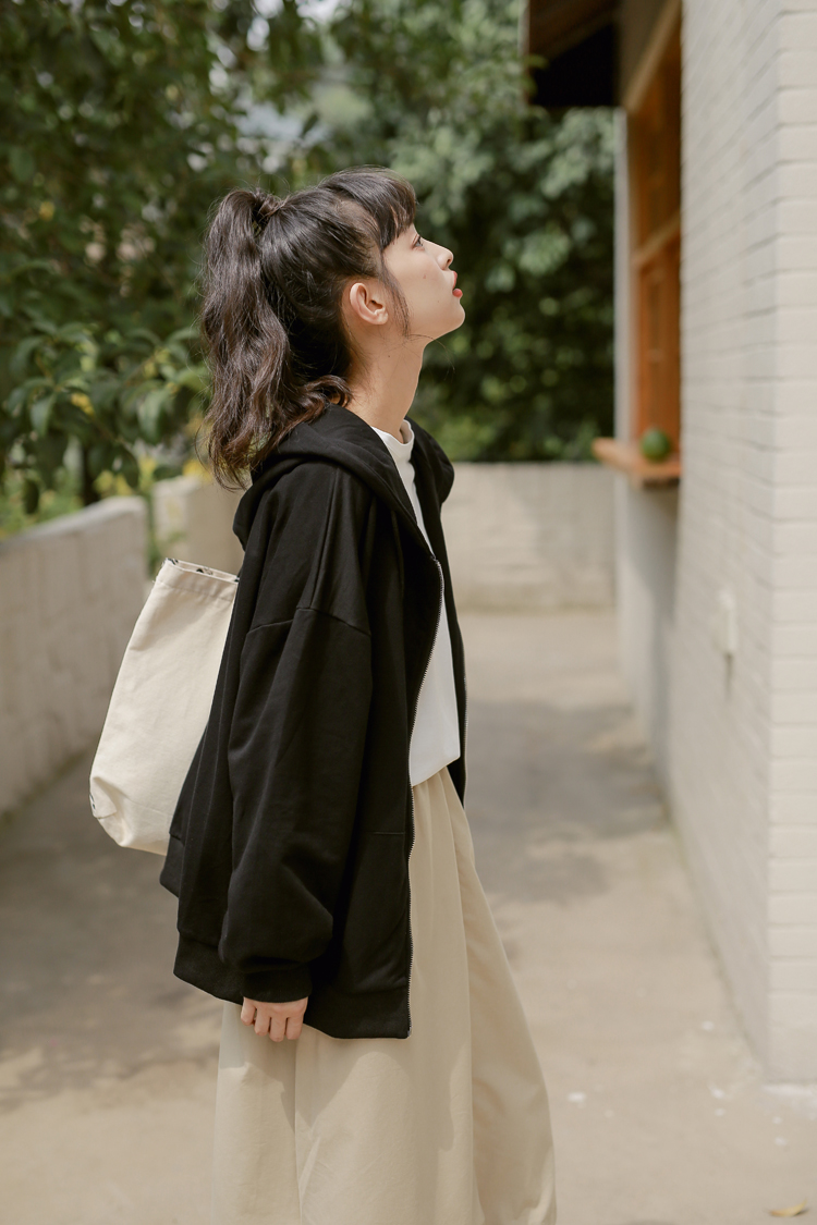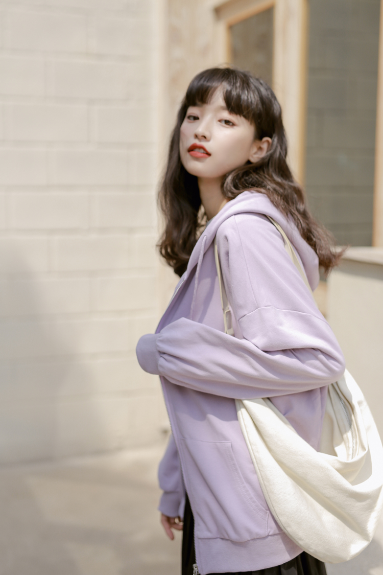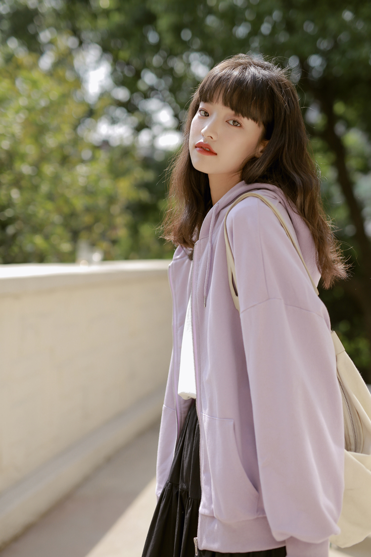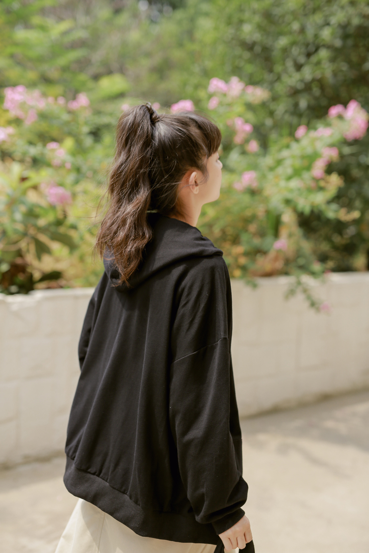 DESCRIPTION — 面料:卫衣棉 颜色:浅紫色 黑色 均码 胸围126cm 衣长65cm 肩连袖长70cm 手工平铺测量,2-3cm误差属正常情况!