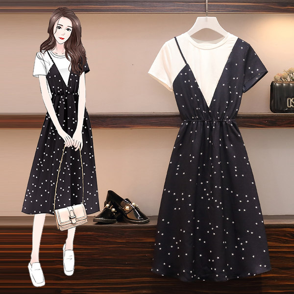 เดรสคนอ้วน เดรสสาวอวบ ชุดเดรสคนอ้วนวัยรุ่น เหมือนใส่2ชิ้น BY PLUS SIZE Girl