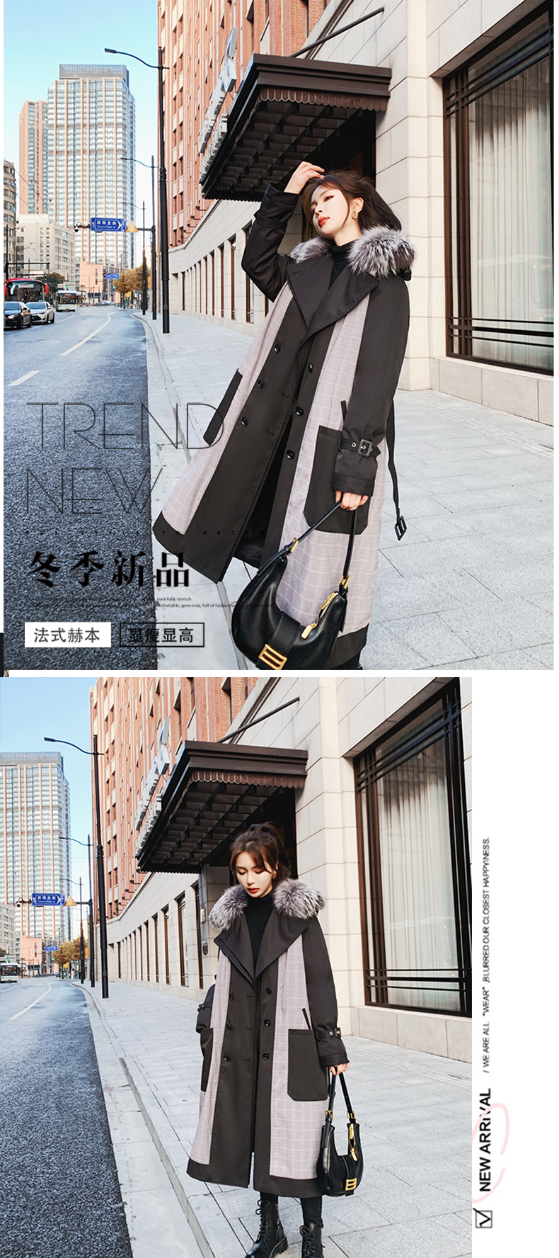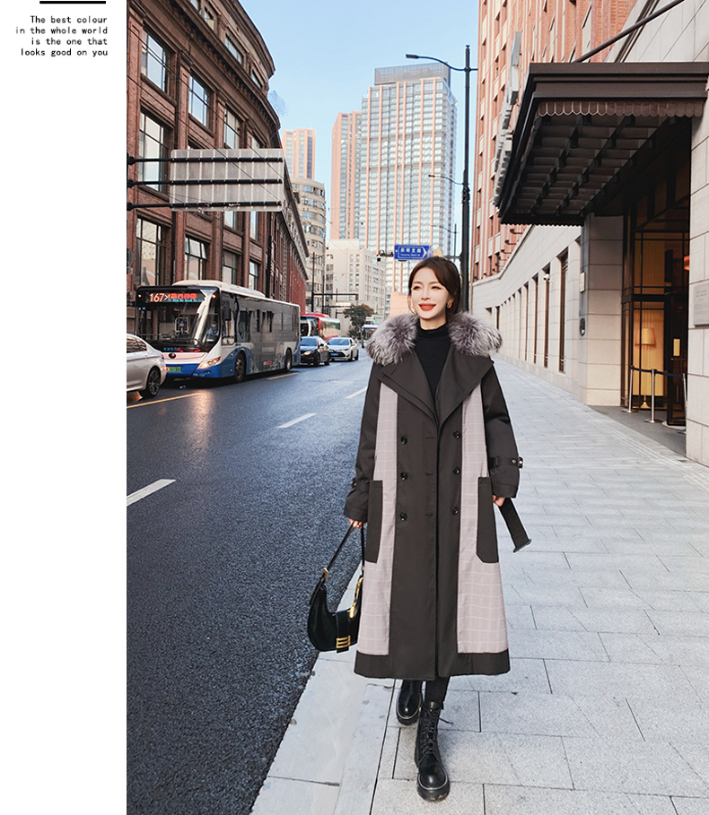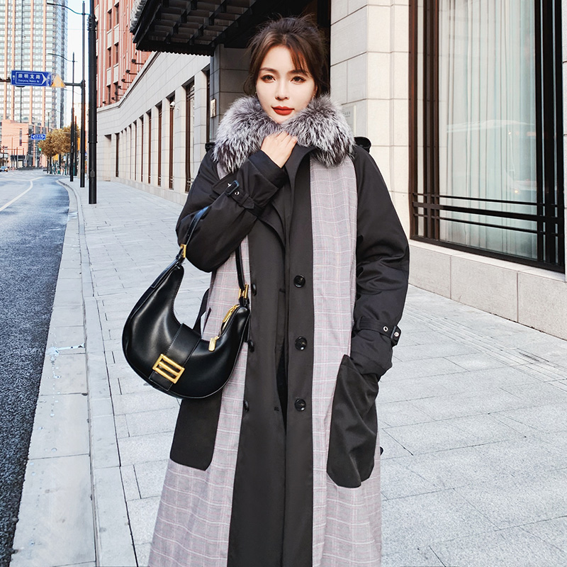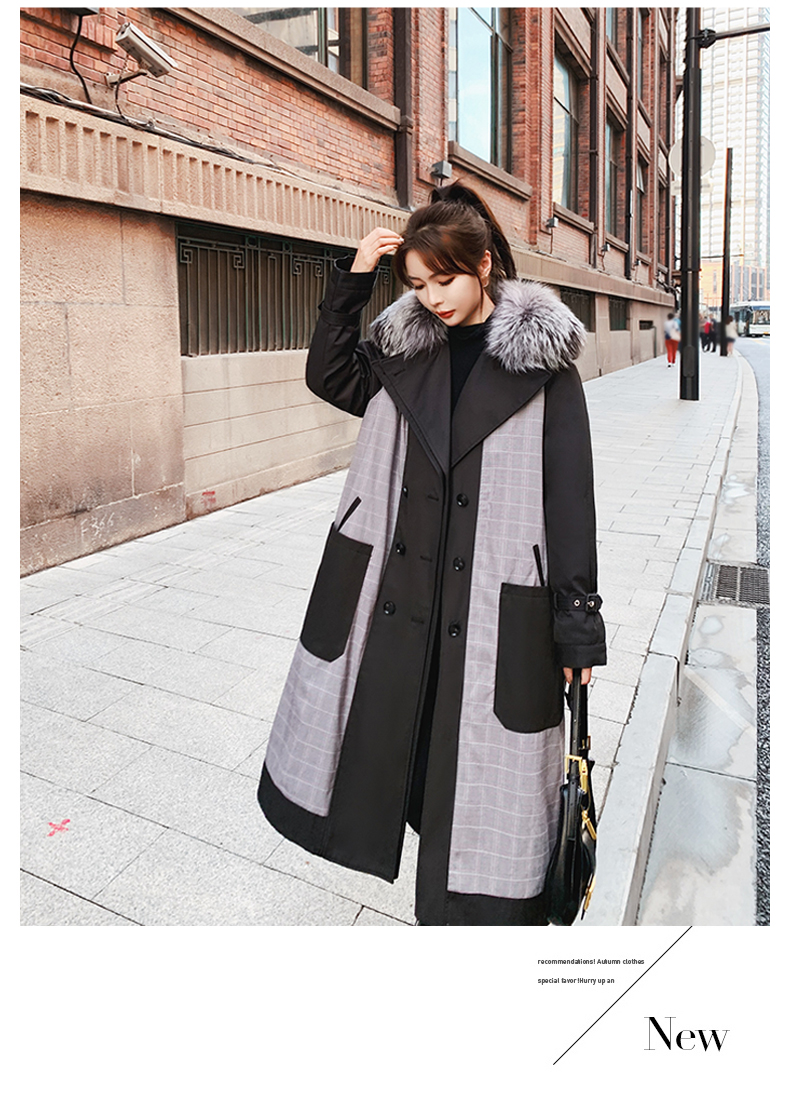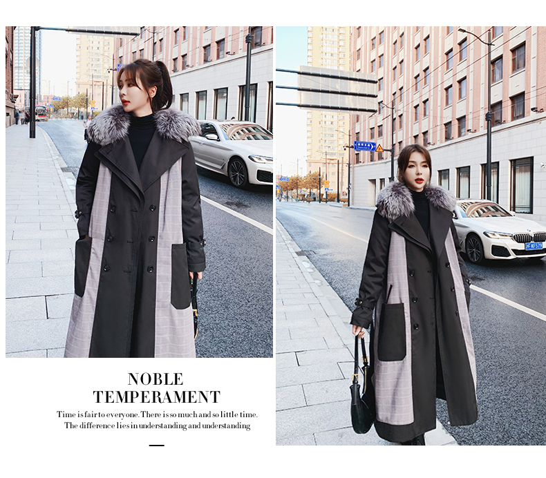хепберн ветер воротник из лисы черный куртка женский длинный стиль бедро 2022 зимний новый гигабайт 90 белый гусь пальто