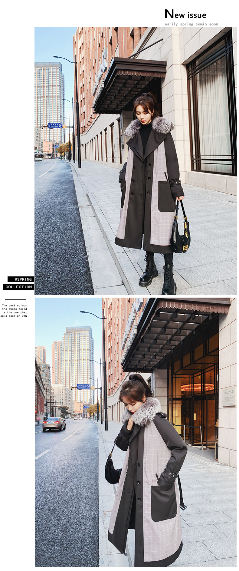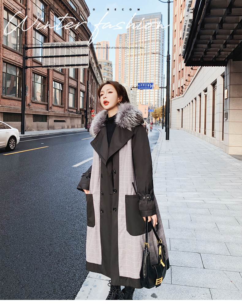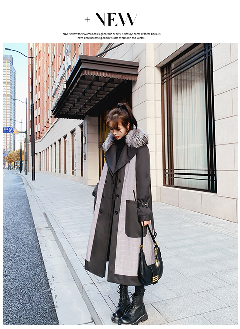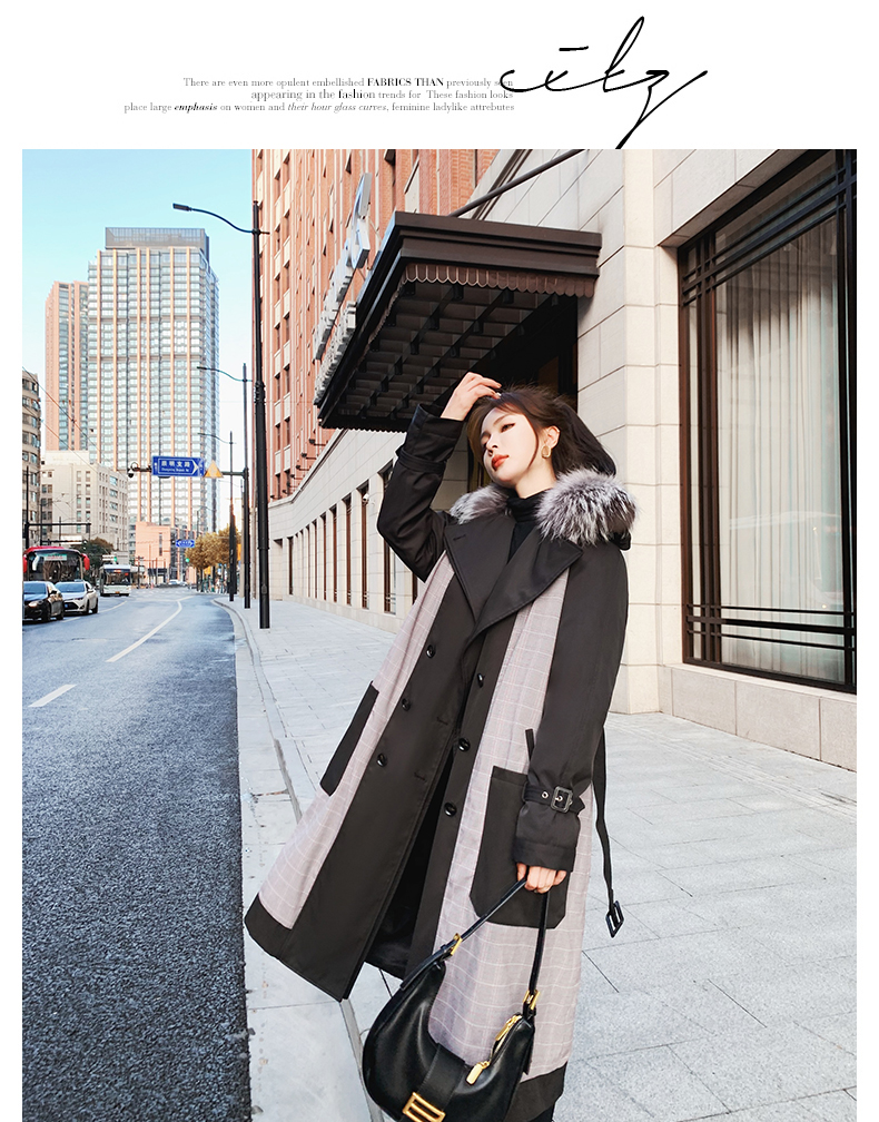 хепберн ветер воротник из лисы черный куртка женский длинный стиль бедро 2022 зимний новый гигабайт 90 белый гусь пальто